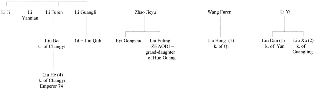 Liu Xiu (2), the first of the Later Han Emperors, traced his descent directly to Liu Fa (1) and thence to Liu Bang.